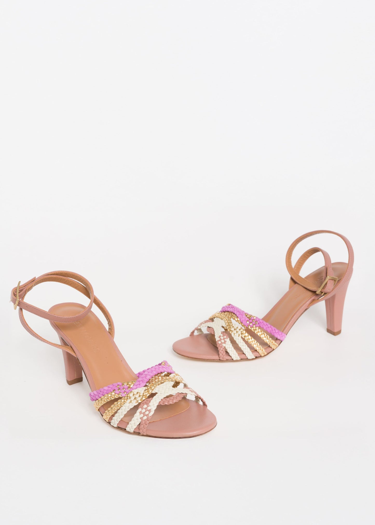 Retro lines, a feminine heel, and hand-braided leather made in Spain.