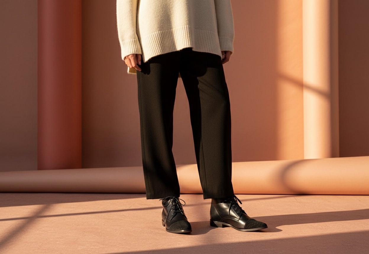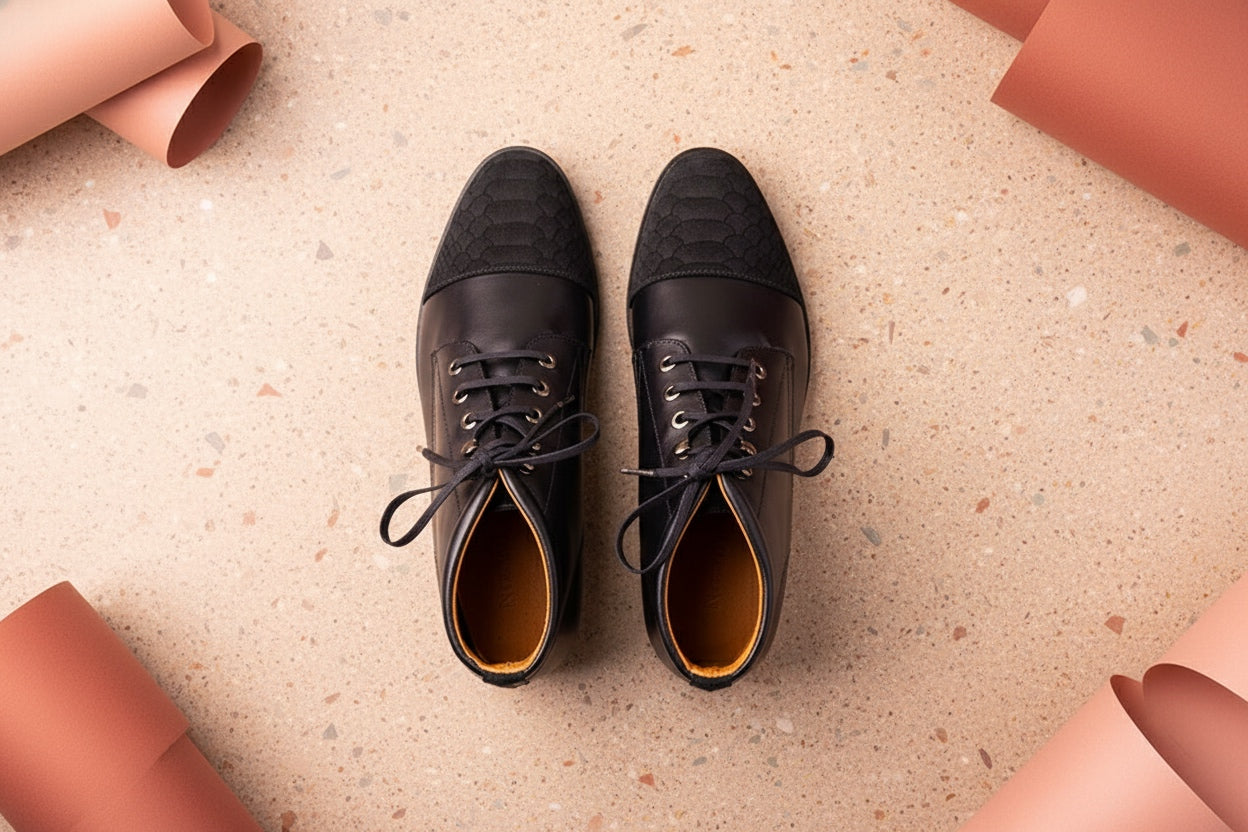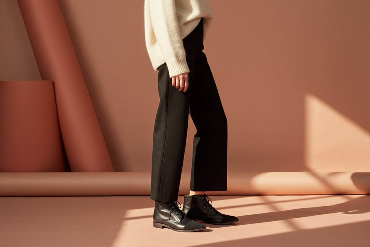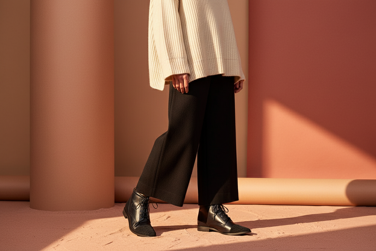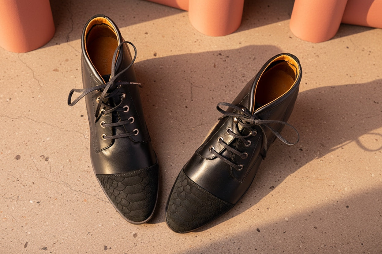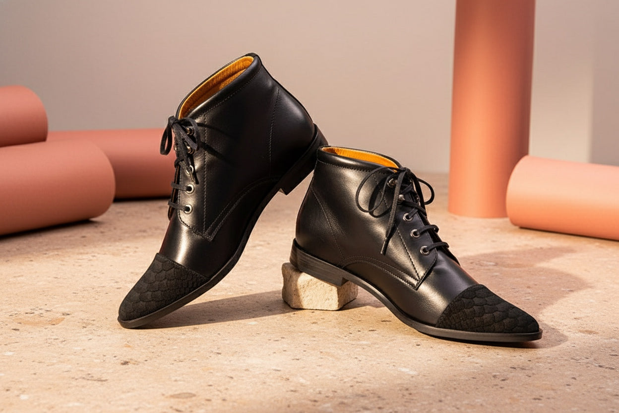 This New Lovers Shoes stylish desert boots in soft black calf leather with an almond cup toe, lace-up front and a low block heel. Wear them with high-waisted dark-washed jeans and a navy wool topcoat for a classic look.