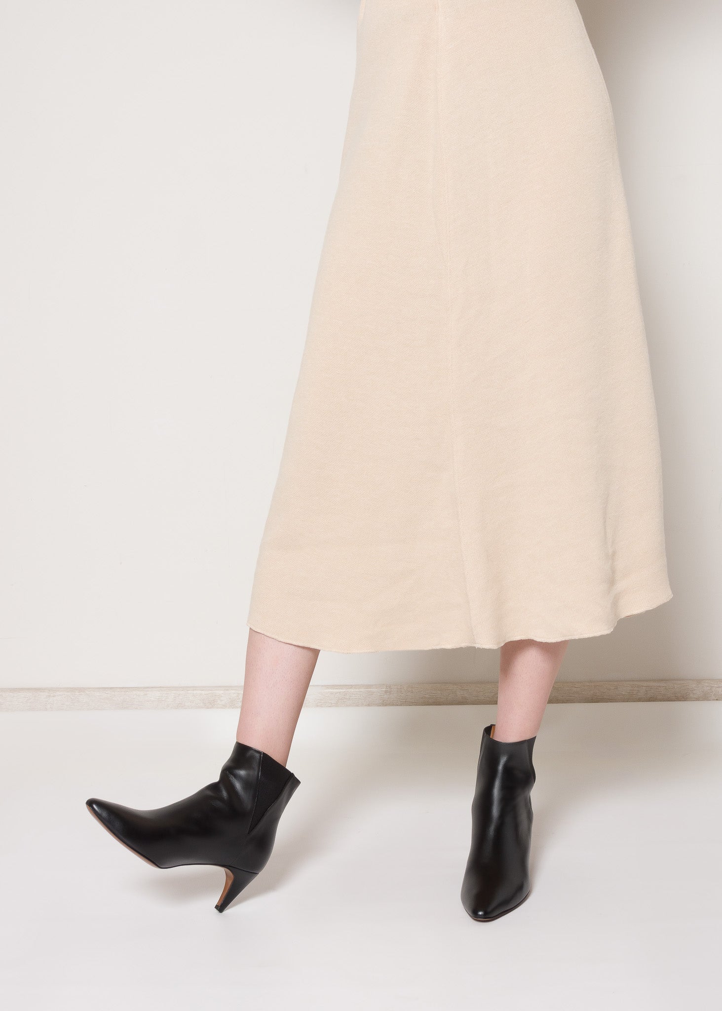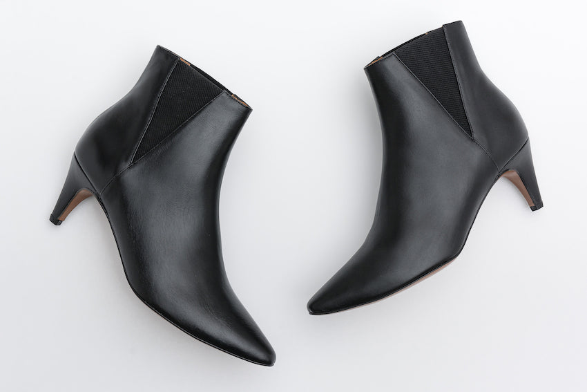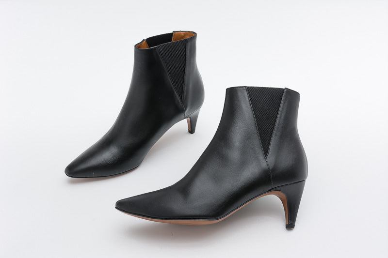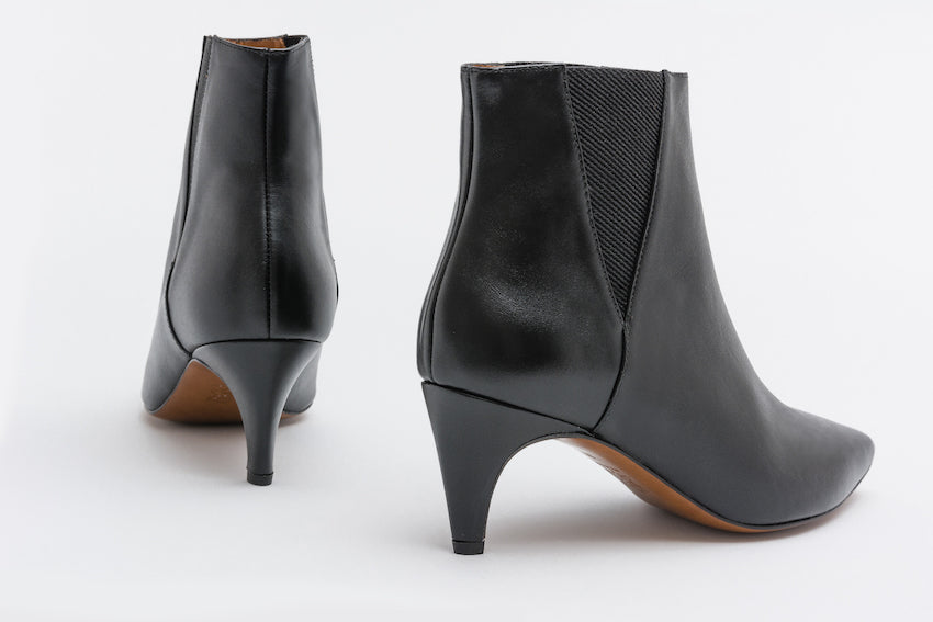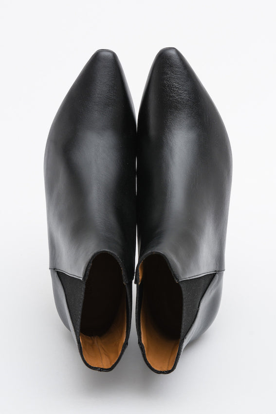 An 80's inspired pointy toe pixie bootie crafted on a smooth black leather will add a little rock detail to your look. Ailyn will match perfectly with your favourite  black denim and motorbike leather jacket