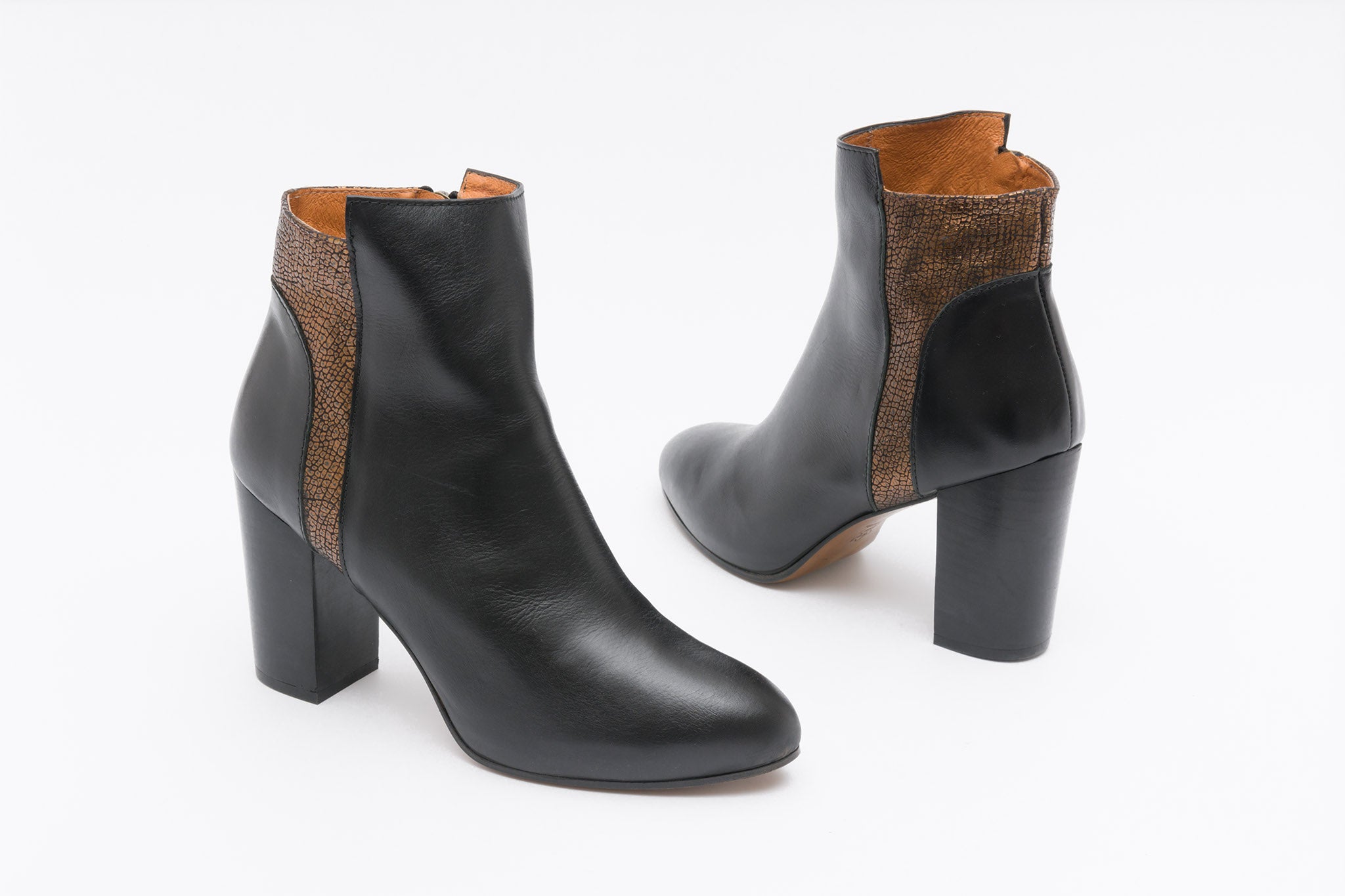 Do you want to add some attitude to your everyday outfit? Our Bowie classy boot is designed to add a special touch to your day-to-day looks. Sitting in a chunky yet classy stack heel and featuring a round almond toe with an inside platform to assure comfort, wear yours with a pinstriped wool suit and cropped white cotton turtle-neck body.