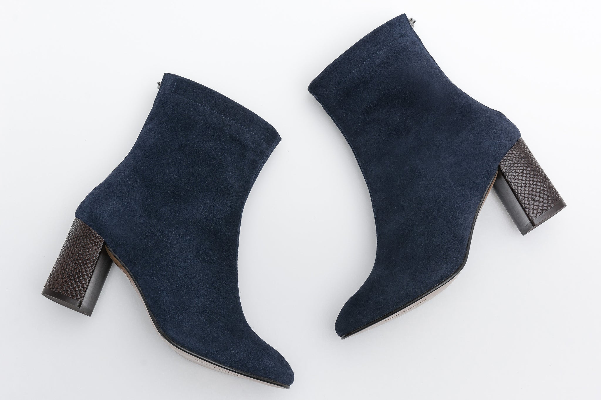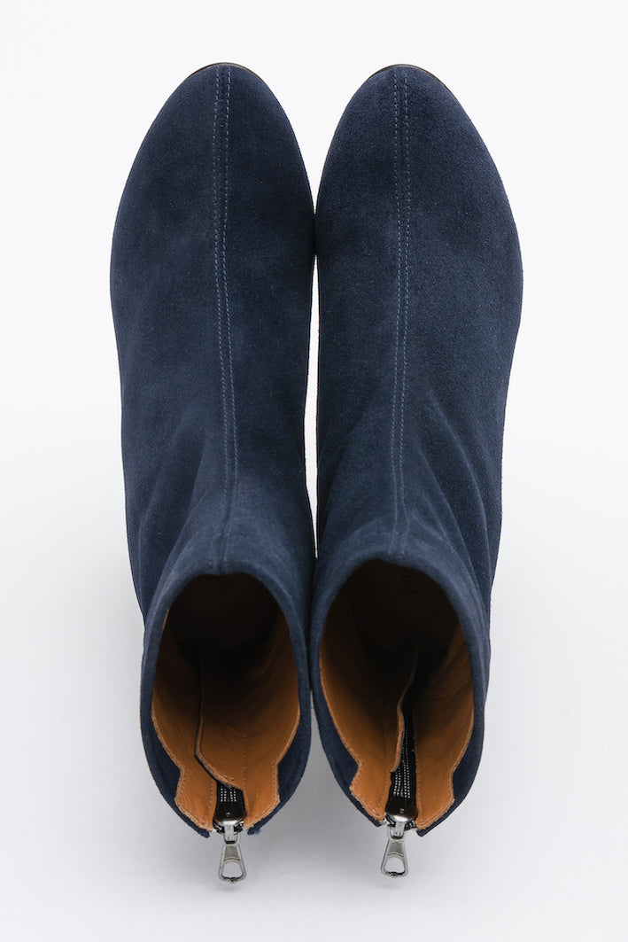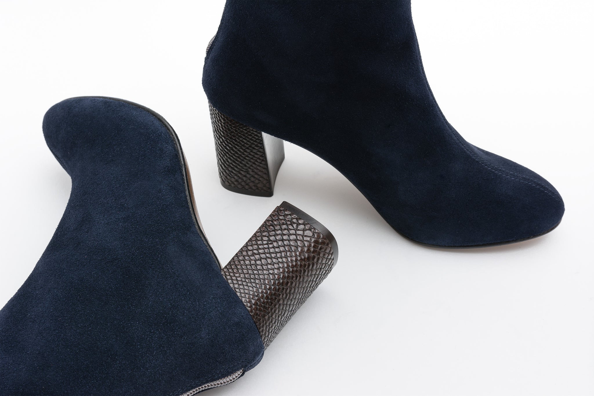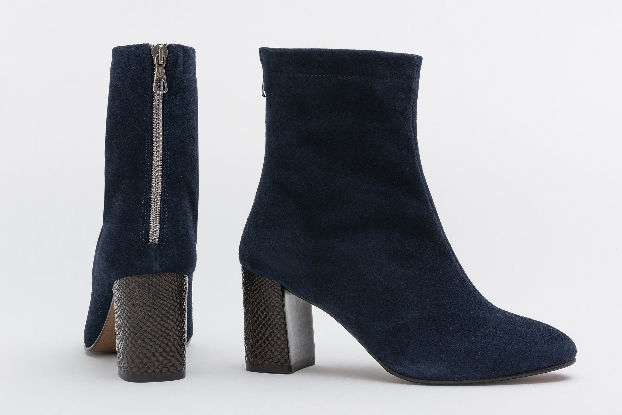 Deanna on velour Marino is a wardrobe staple for the new fall winter season. Handcrafted on a soft velour, they are fitted with a metallic back zipper and sitted on a decorated stacked cuban heel. Style yours with a pair of mid lentgh retro corduroy pants and basic V-neck tshirts.