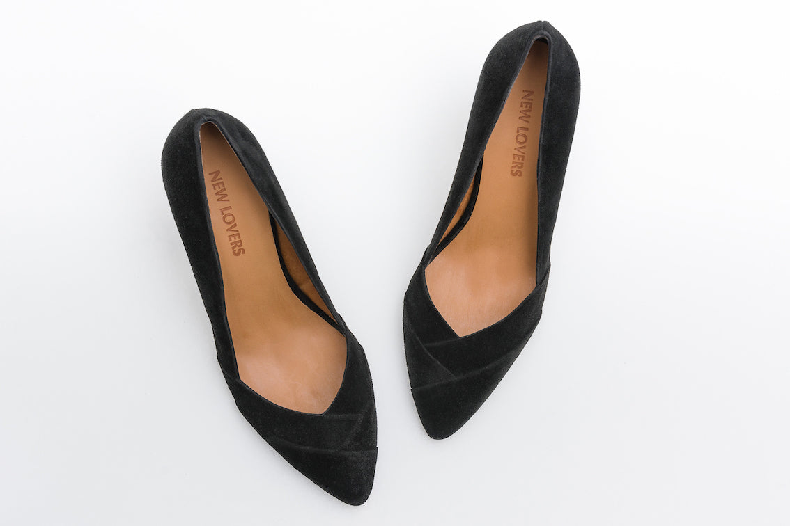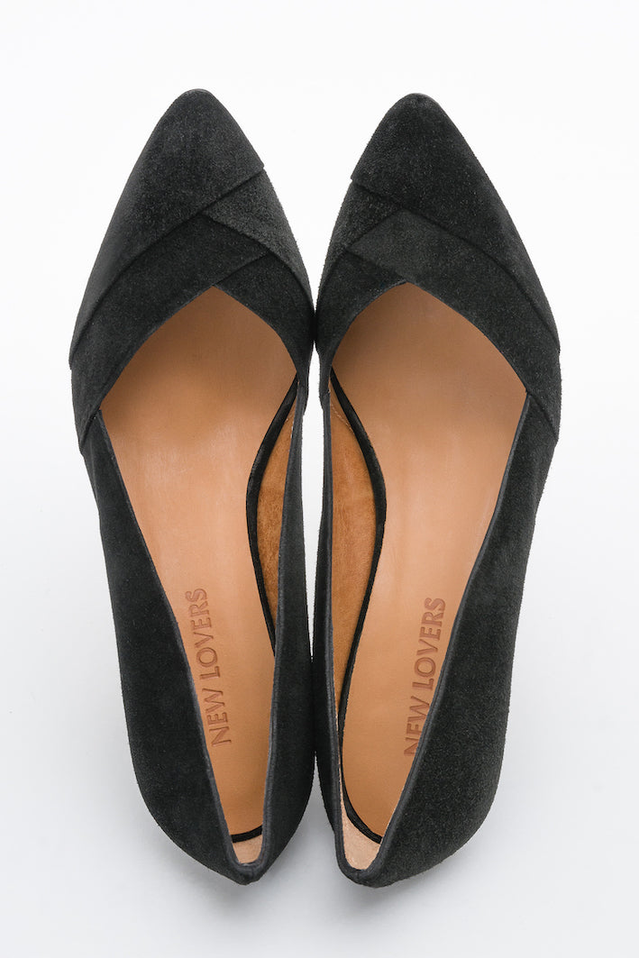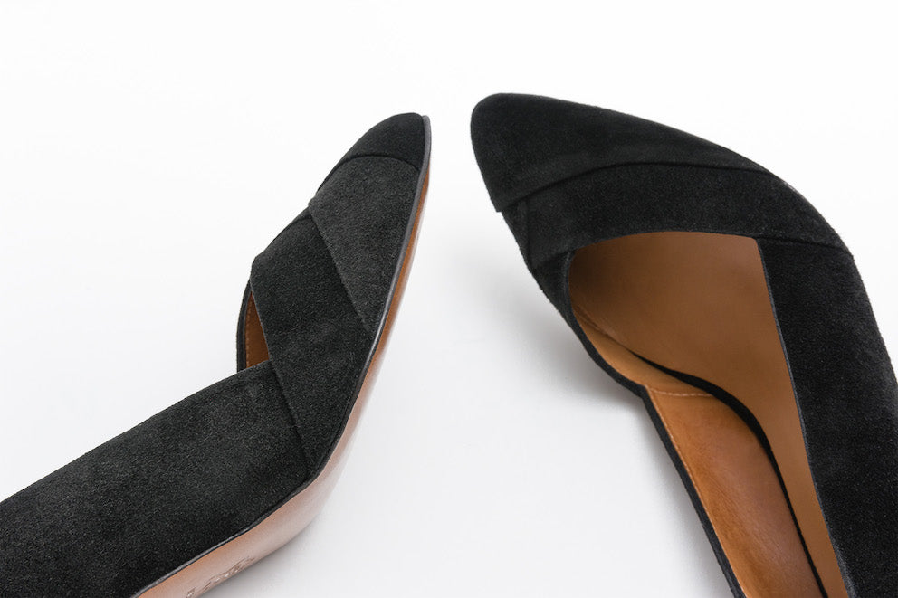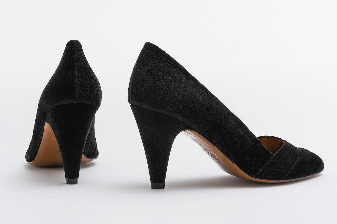 A 60's inspired pump hadcrafted on a soft black velour with a cross femenine cut detail on the toe.Sitting on a confrotable mid cone heel, wear them from day to dark with ease.