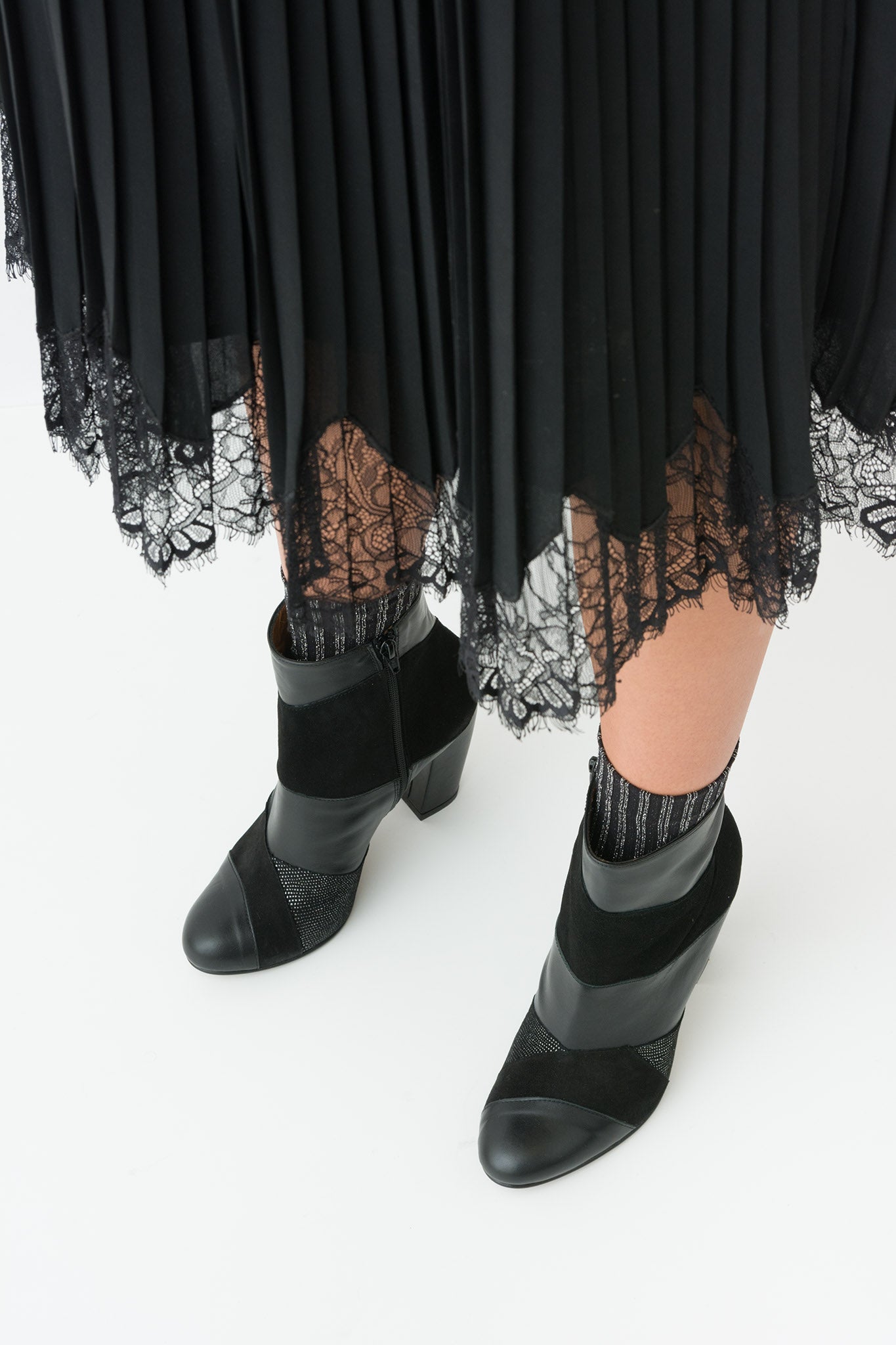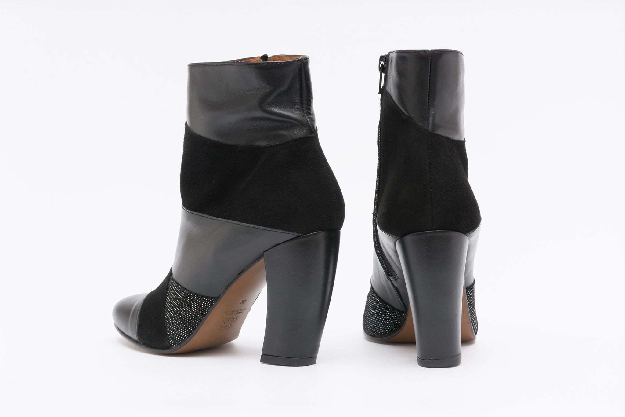 70's patchwork leather work was the inspiration behind our Edner high heel boots. Handcrafted in three different leathers and shaped in a classy round almond shape toe with side zip fastenings, Edner will help you step with style into the new season!