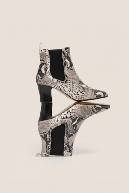 Edris was designed to become the must-have Chelsea boot in everyone's wardrobe. With its versatile 6 cm Cuban stacked heel this combination in black and white snake embossed leather can be combined with anything from a knee-length jumper dress or a simple black jean for the perfect Autumn outfit.