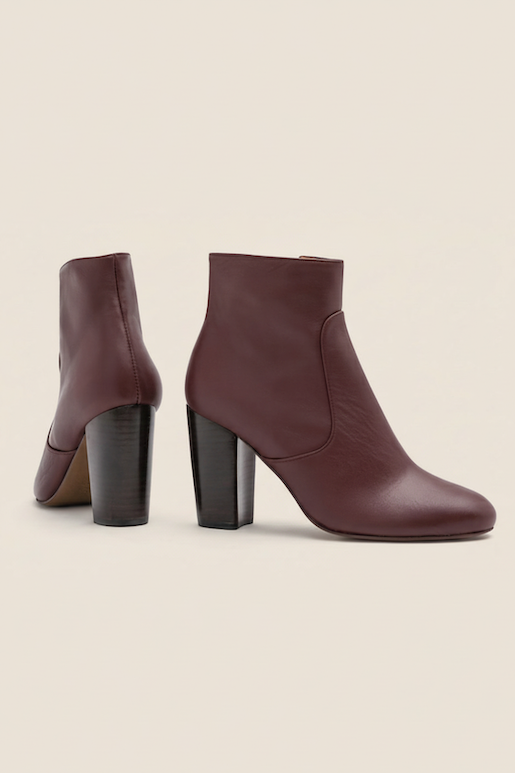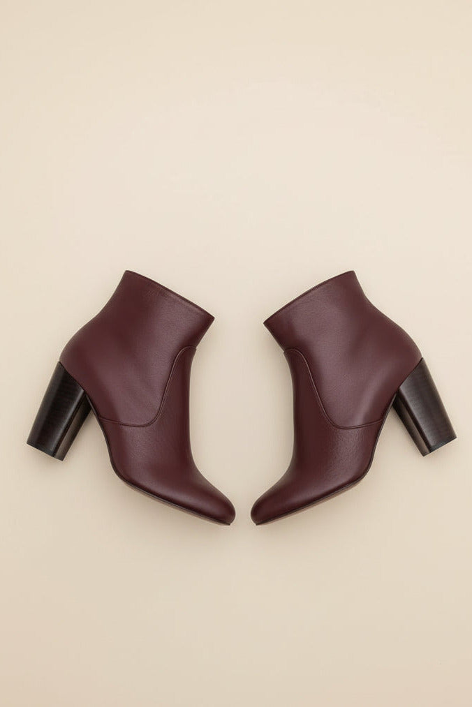 The classic round toe and cylindrical block heel makes Martell a sophisticated, yet versatile ankle bootie. Handcrafted with deep red oxblood calfskin leather with a inner side zipper, wear it as an alternative to the classic black bootie with any winter outfit.