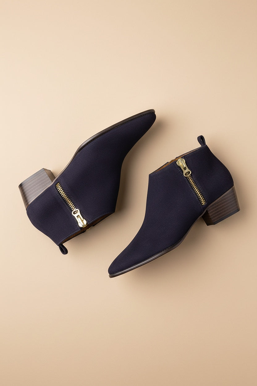 A hand-crafted ankle boot in smooth calf leather with a metal zipper and cowboy-inspired sharp toe and low sole unit. Wear yours with cropped boyfriend jeans and oversize wool grandad sweaters.