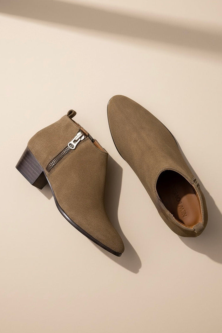 A hand-crafted ankle boot in smooth calf leather with a metal zipper and cowboy-inspired sharp toe and low sole unit. Wear yours with cropped boyfriend jeans and oversize wool grandad sweaters.