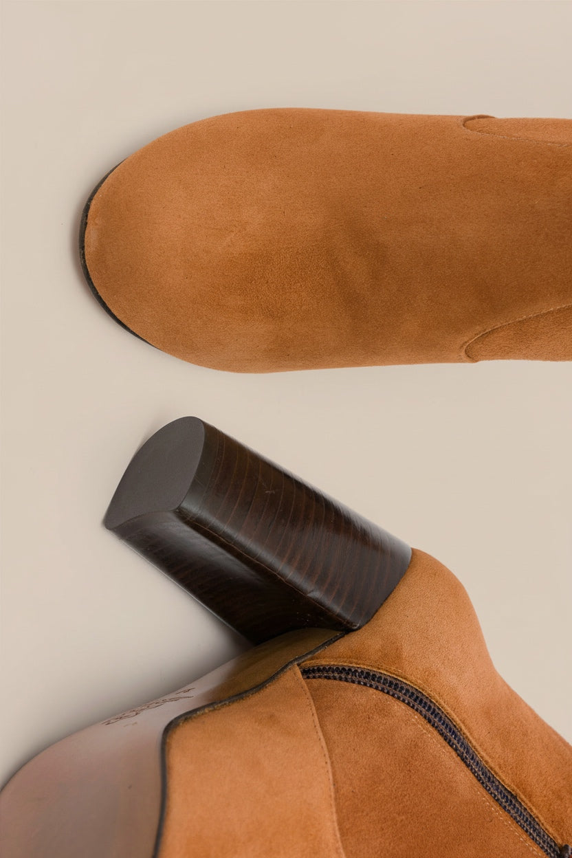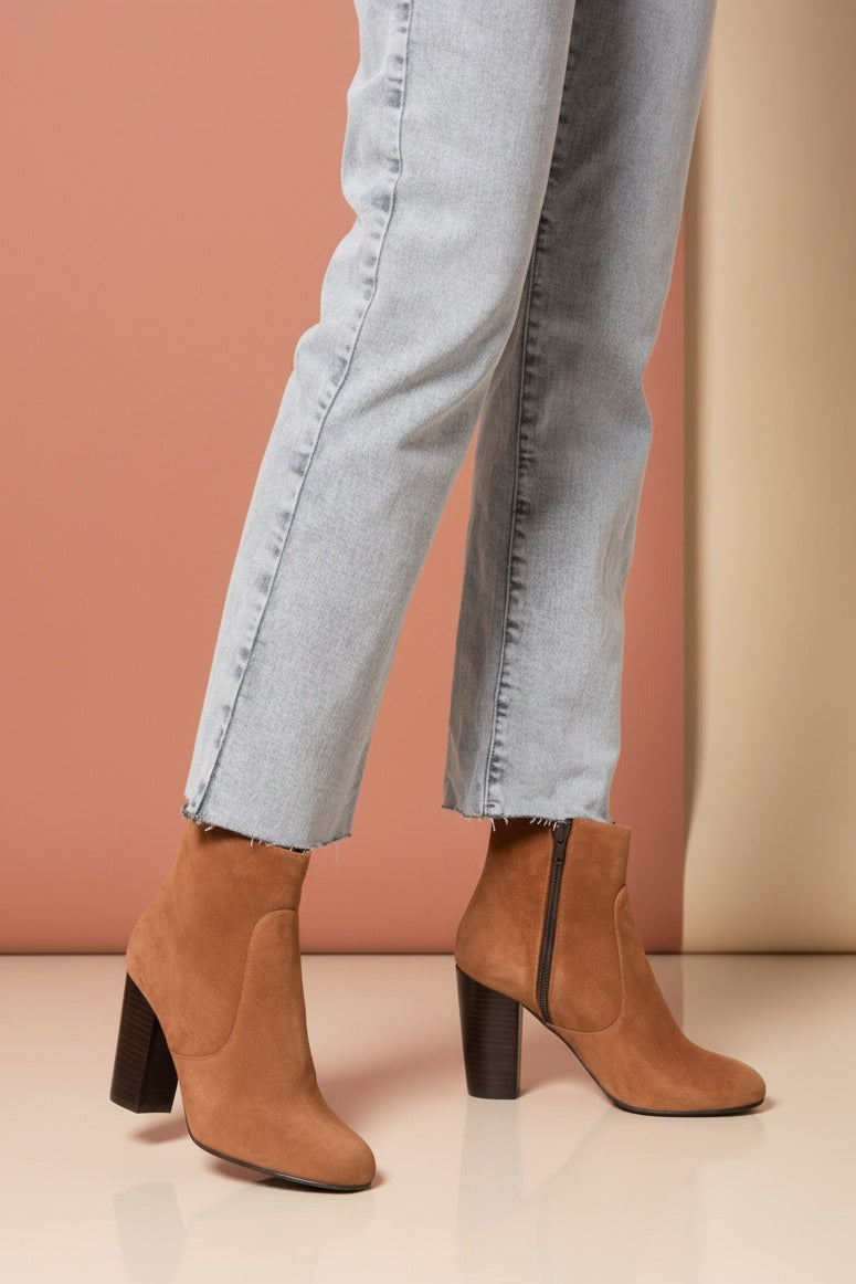 The classic round toe and cylindrical block heel makes Martell a sophisticated, yet versatile ankle bootie. Handcrafted with deep red oxblood calfskin leather with a inner side zipper, wear it as an alternative to the classic black bootie with any winter outfit.