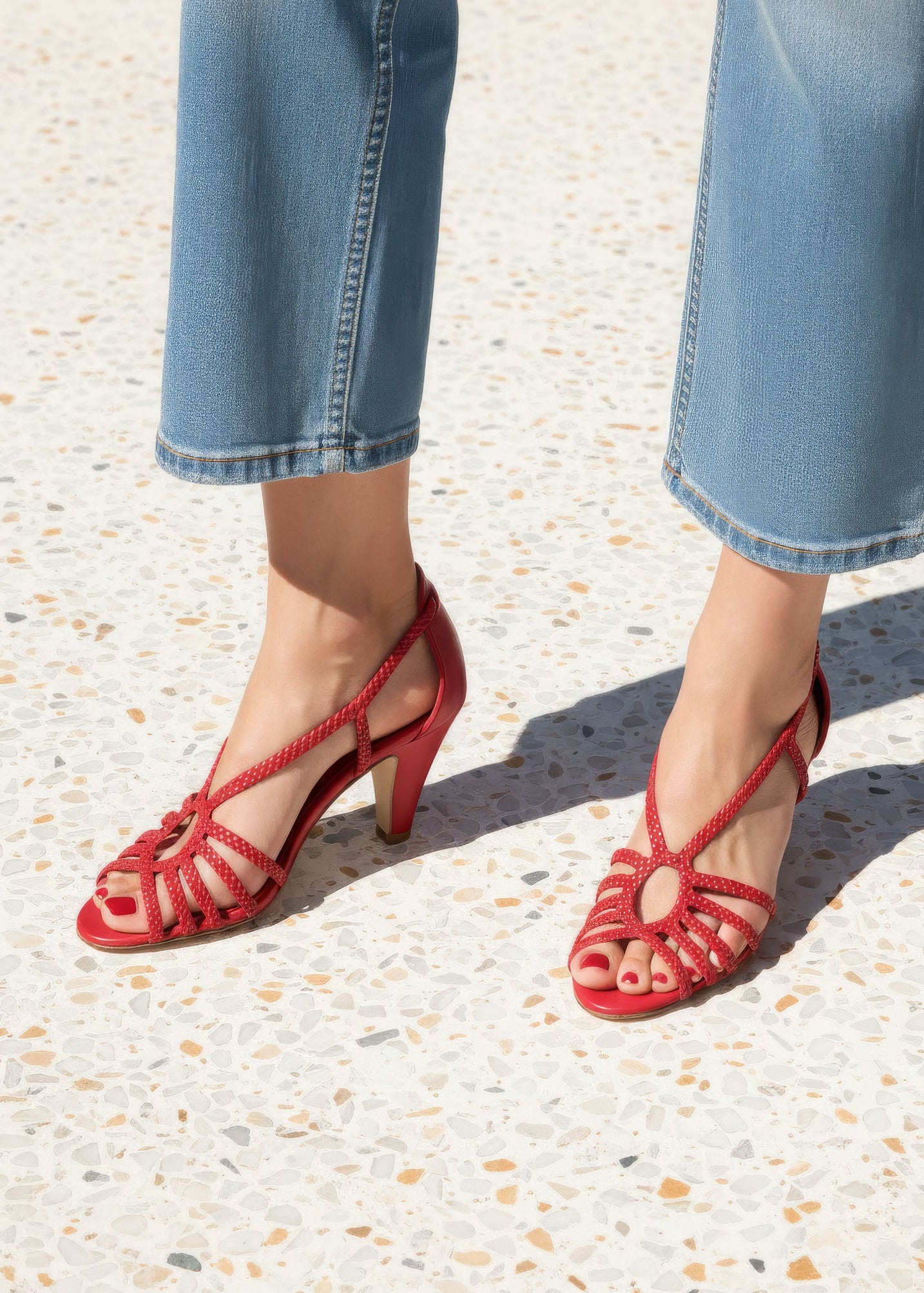 A touch of Classy Boho 80s charm defines our style Anat. This lovely braided strap sandal offers a super feminine feel, sitting on a slim, classic thin heel. Pair these peep toes with straight-cut jeans for a perfectly balanced look.