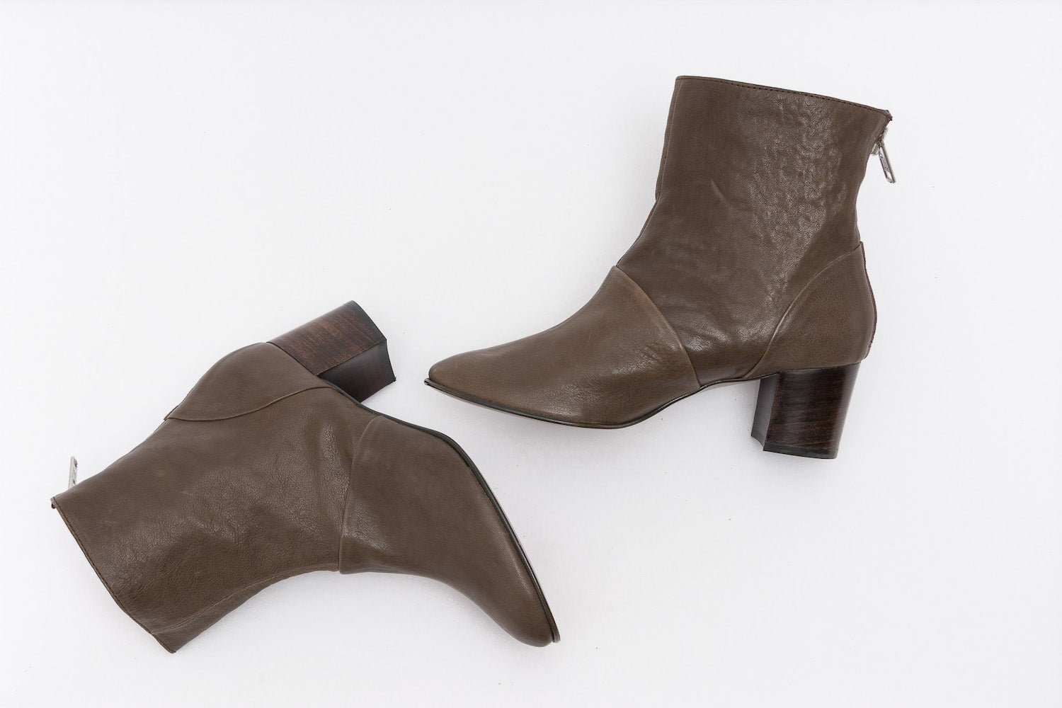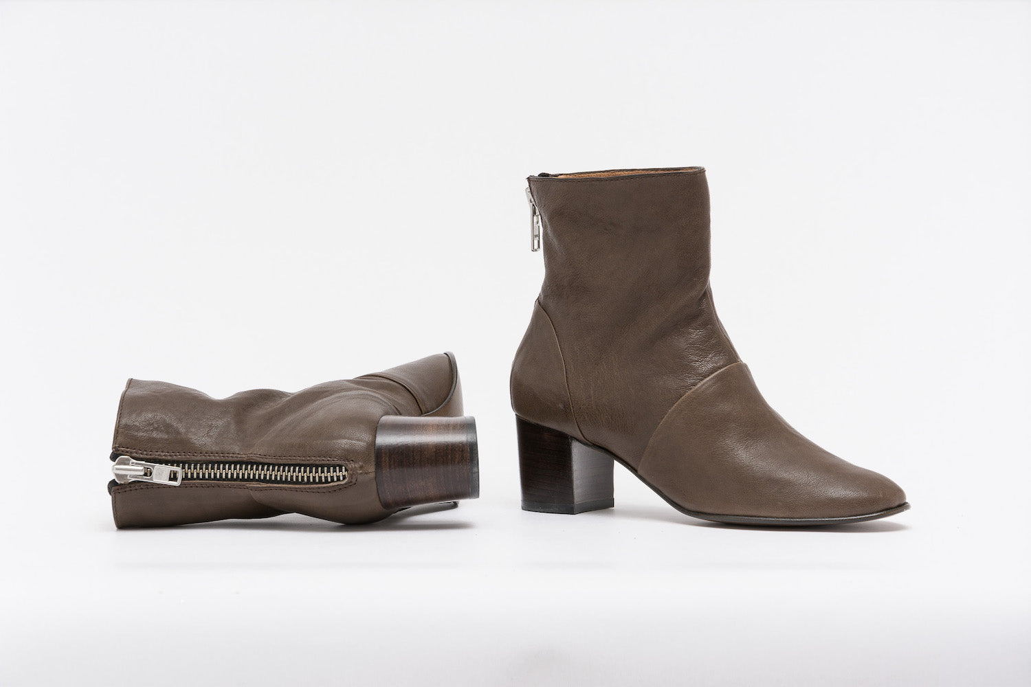 Made in a classy round toe shape sitting in a block heel and handcrafted from a buttery soft full-grain taupe leather our Cliff boots will lighten up any of your new season outfits and will be your go-to boots this Fall Winter!