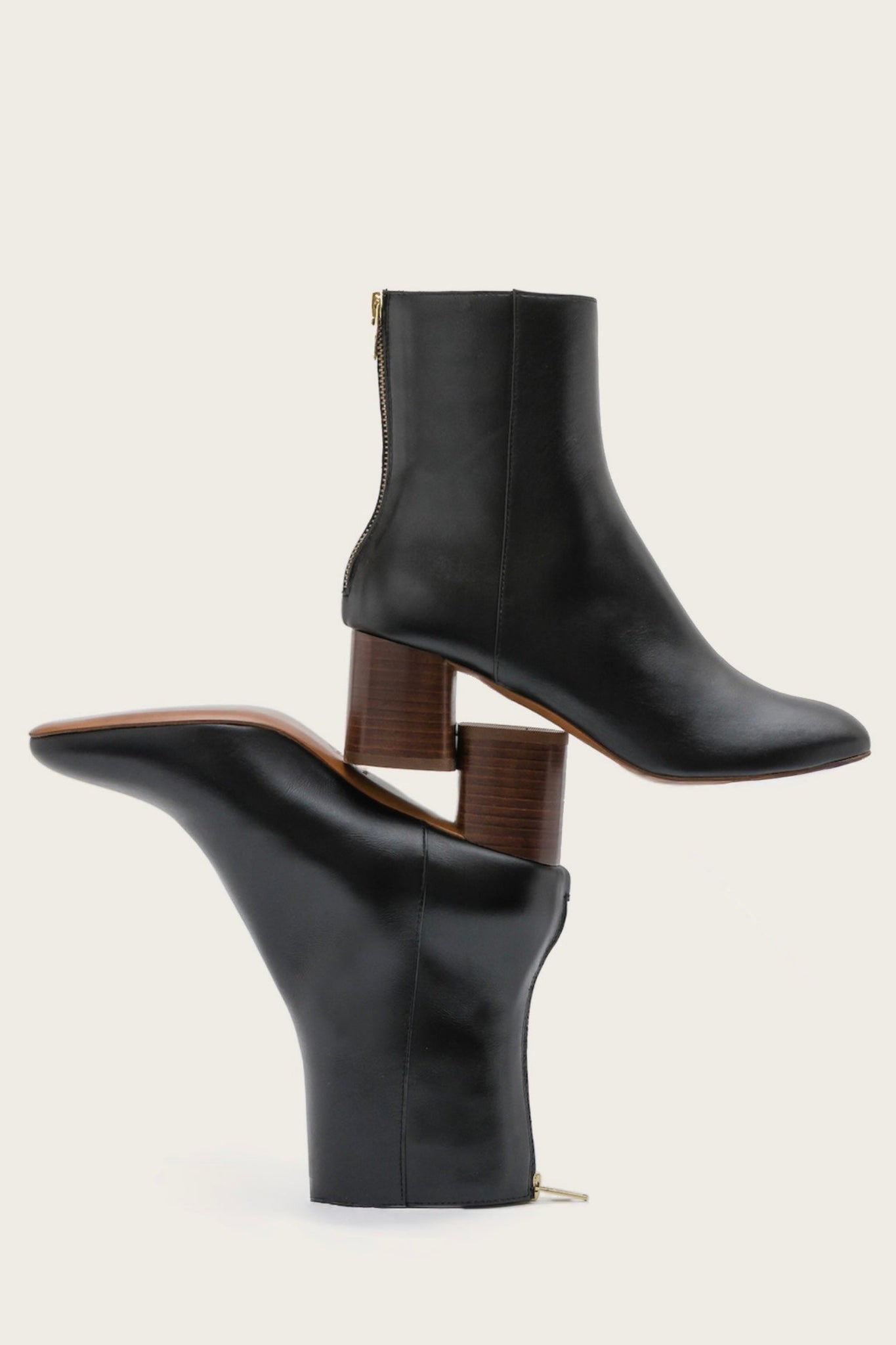 Gorka boots offer a super versatile silhouette with endless styling possibilities. Build on a constrating color stacked heel with a round toe and handcrafted on a smooth black leather, will be a key style for your fall winter wardrobe.