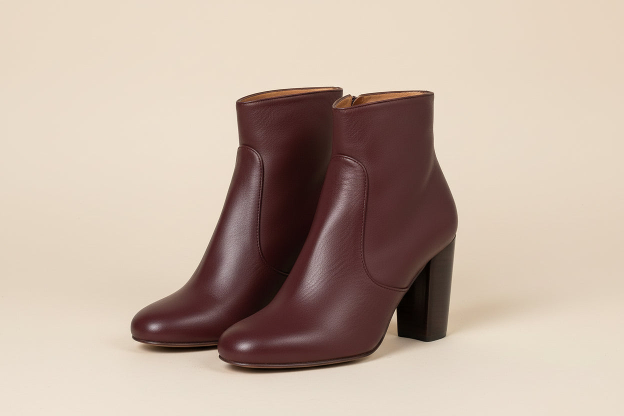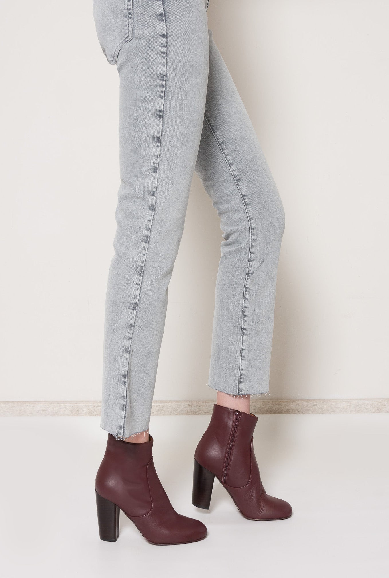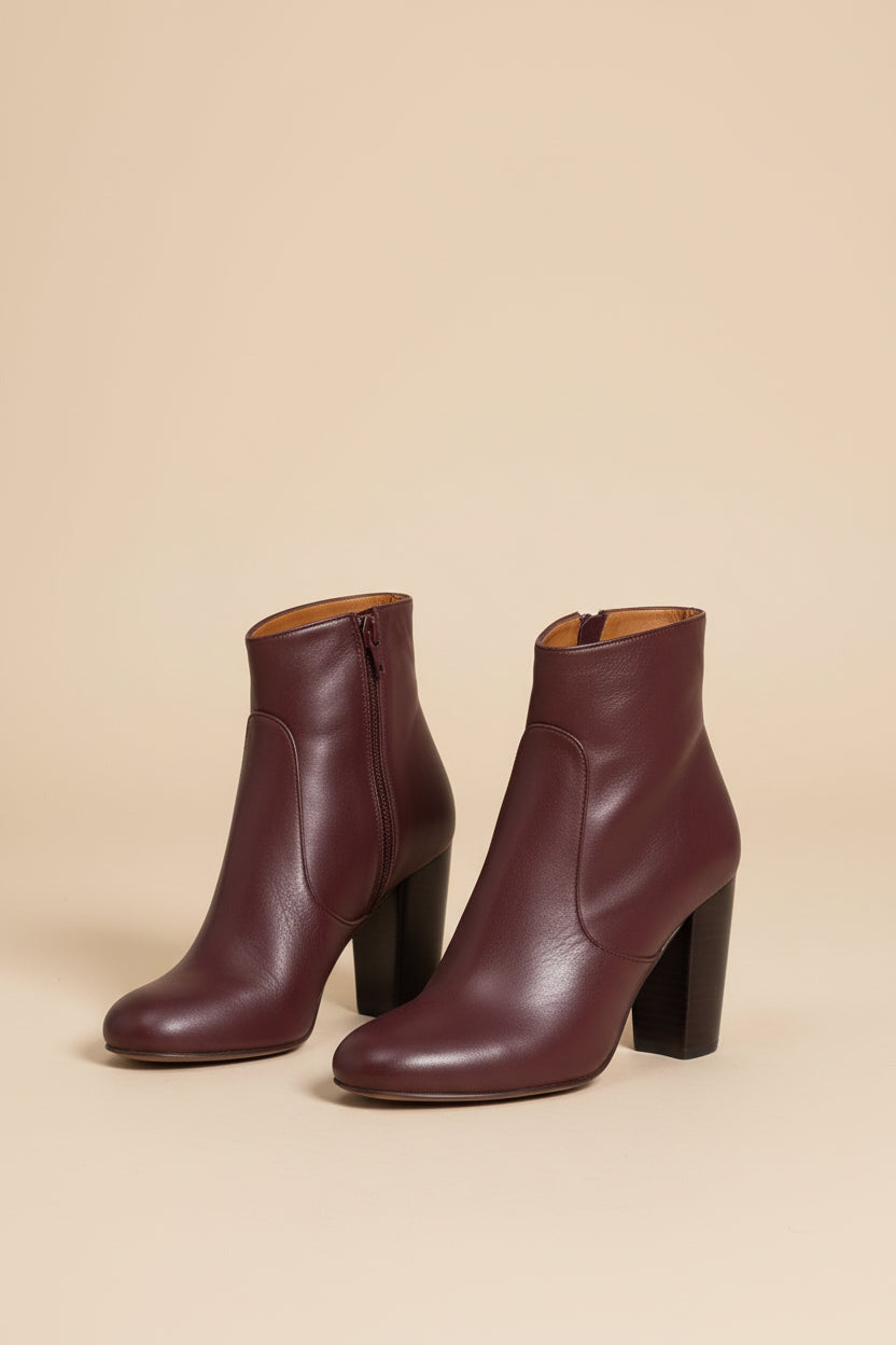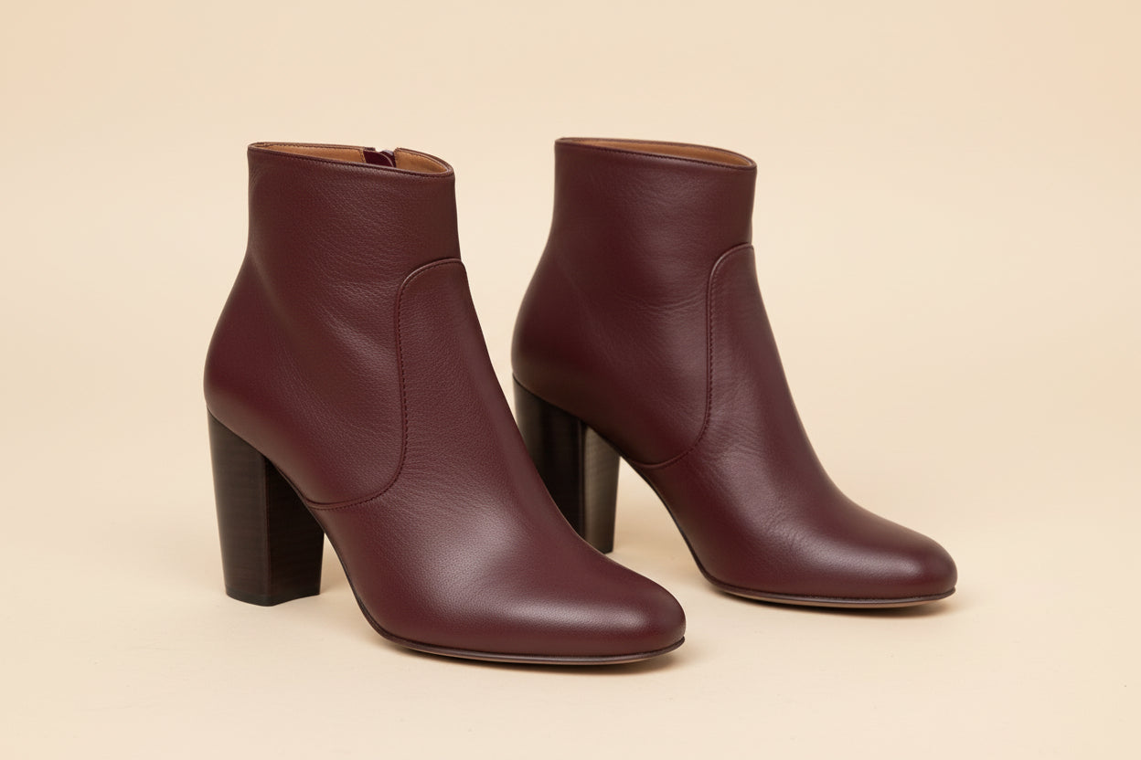 The classic round toe and cylindrical block heel makes Martell a sophisticated, yet versatile ankle bootie. Handcrafted with deep red oxblood calfskin leather with a inner side zipper, wear it as an alternative to the classic black bootie with any winter outfit.