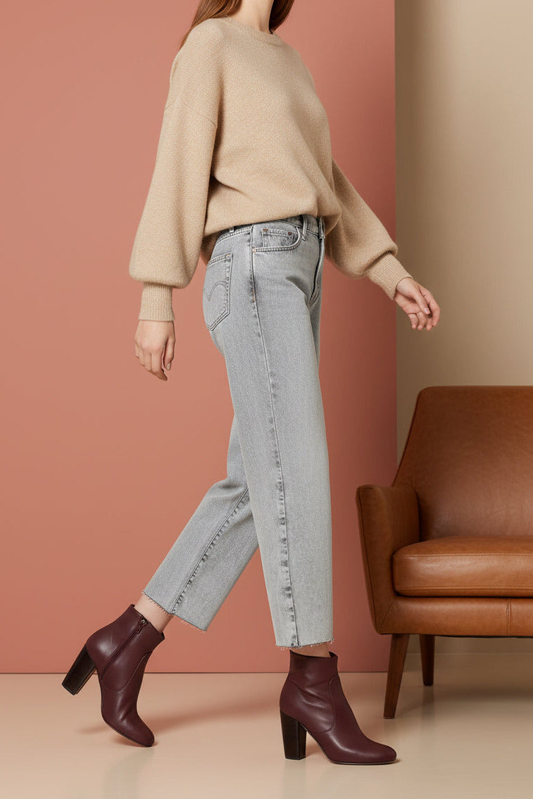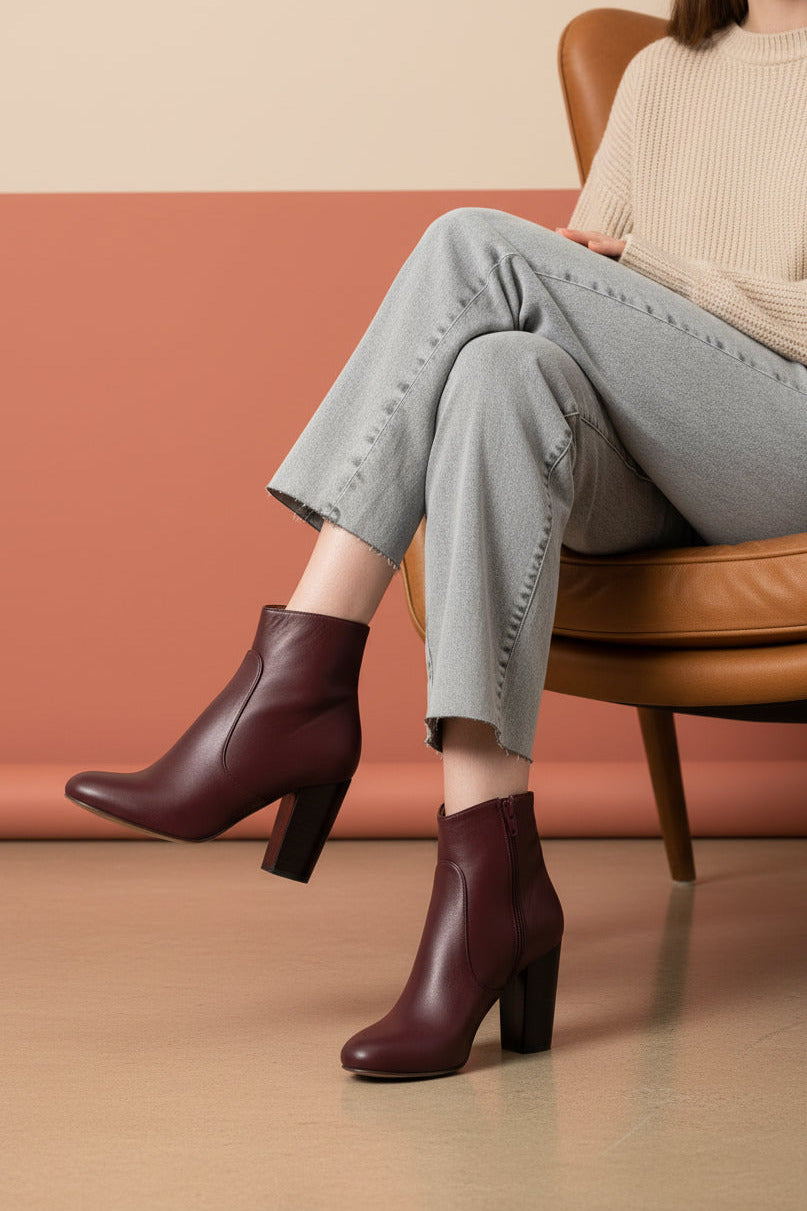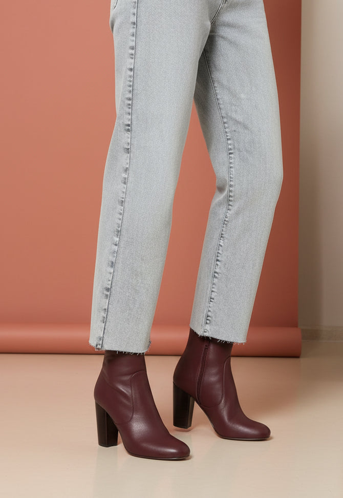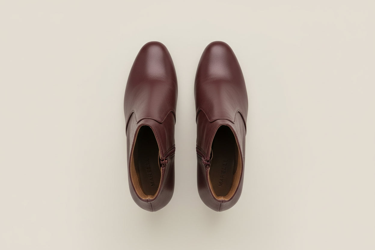 The classic round toe and cylindrical block heel makes Martell a sophisticated, yet versatile ankle bootie. Handcrafted with deep red oxblood calfskin leather with a inner side zipper, wear it as an alternative to the classic black bootie with any winter outfit.